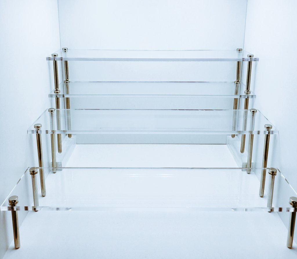 ワイドスーパーハイタイプを追加のアクリル棚で仕切り、上段は広々と使用されてます!